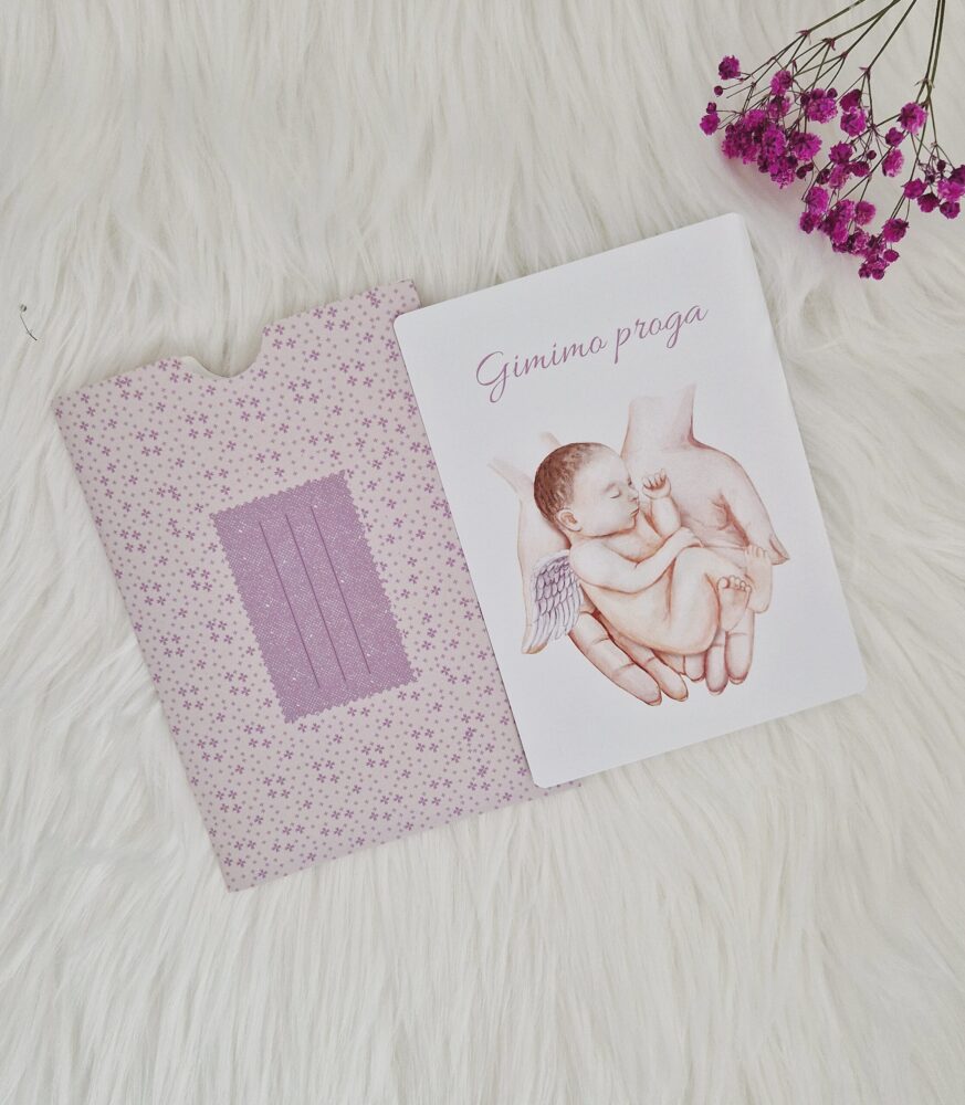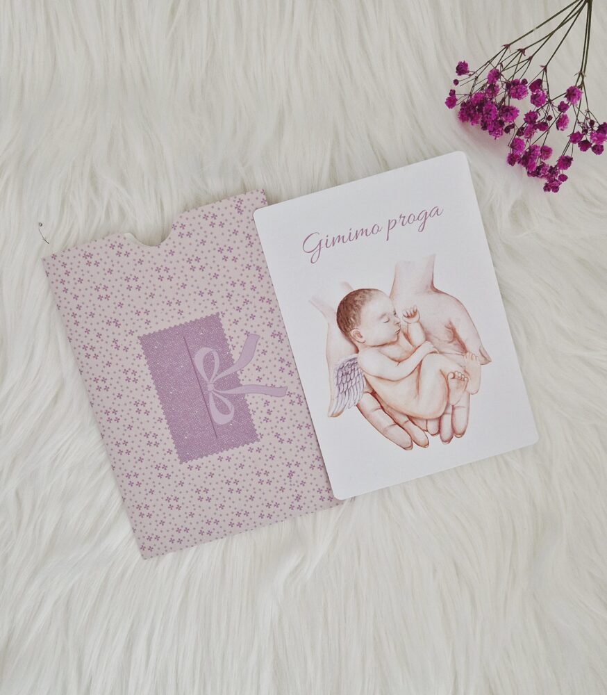 Jaukus vokelis su atviruku – puikus būdas įteikti piniginę dovaną mažylės gimimo proga. Į vokelio vidų galima įdėti tiek atviruką, tiek pinigus ar kitą smulkią dovanėlę. Vokelis pagamintas iš švelnaus, standaus popieriaus, kuris suteikia jam tvirtumo ir išskirtinumo.