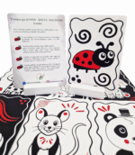 👁️ Skatina regėjimo vystymąsi, nes kontrastingos spalvos ypač patraukia kūdikio dėmesį.