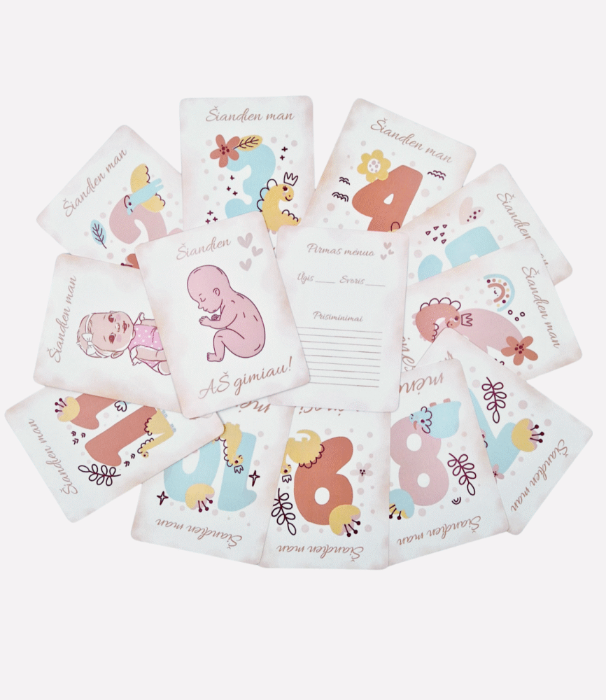 Jaukios kūdikio 12 mėnesių kortelės sukurtos tam, kad padėtų įamžinti kiekvieną etapą: