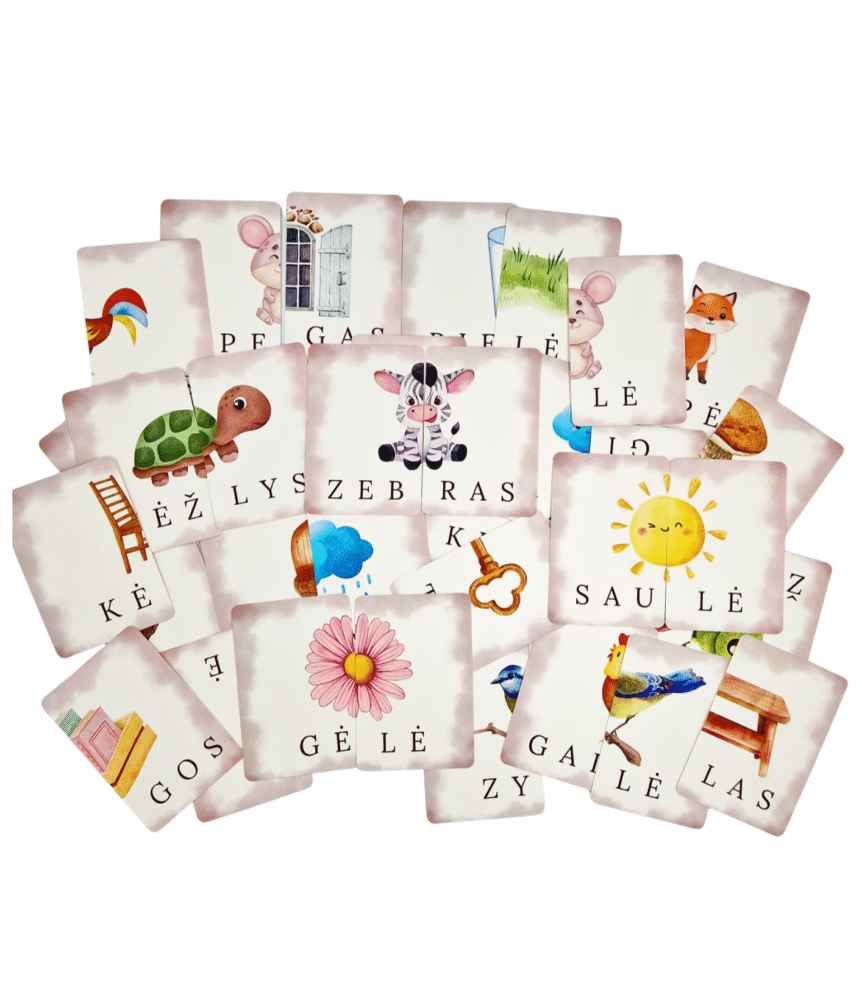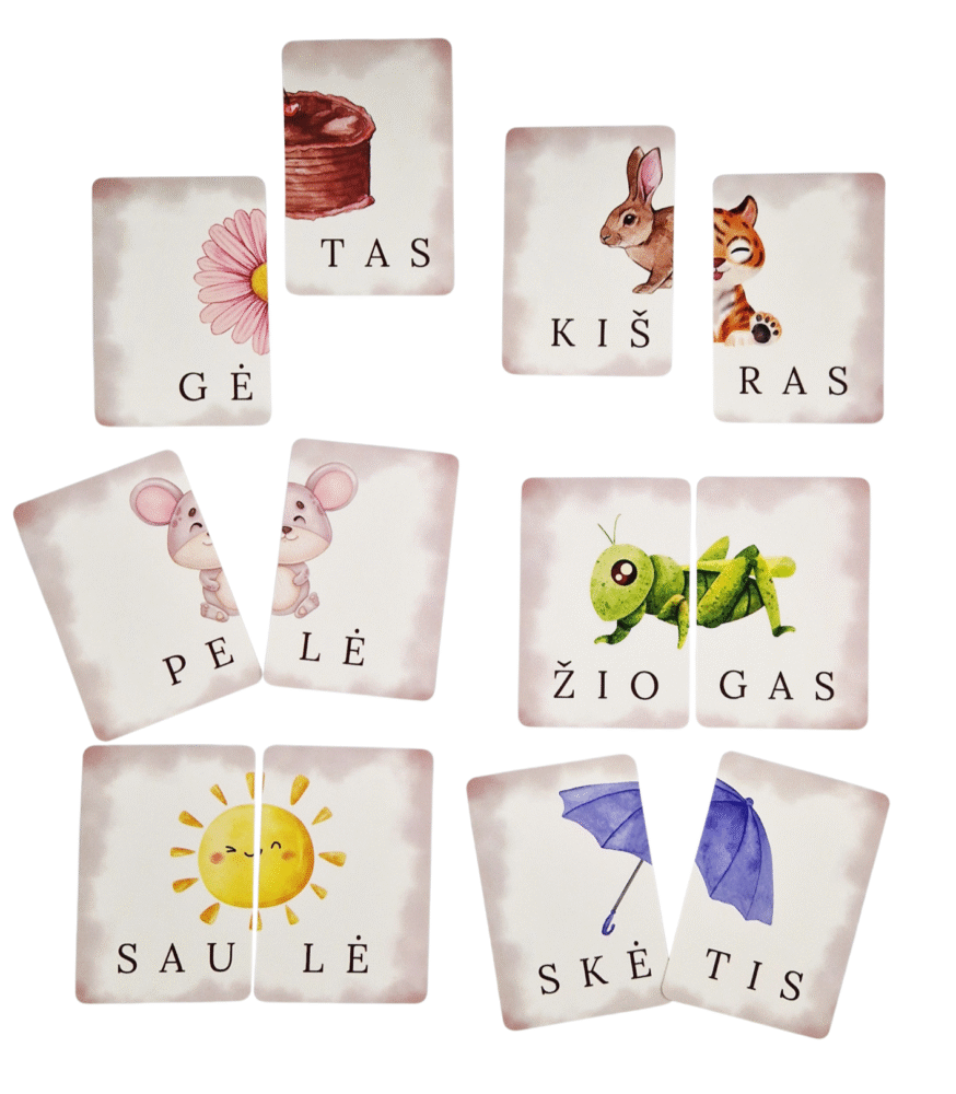 🔤 Net 64 kortelės, iš kurių galima sudėti 32 smagius dviskiemenius žodžius.